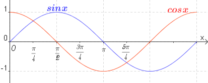 - This question could easily be answered by comparing the graphs of $y=sin x$ and $y=\cos x$. The two graphs are shown below and it easily seen that $y=\sin x$ is less than $y=\cos x$ over the open interval $(0,\dfrac{\pi}{4})$