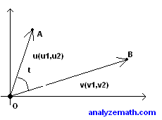 In the figure below, vectors v and u have same initial point the origin O(0,0). Points A and B are the terminal points. t is the angle made by the two vectors. Applying the cosine law to triangle OAB, we obtain: